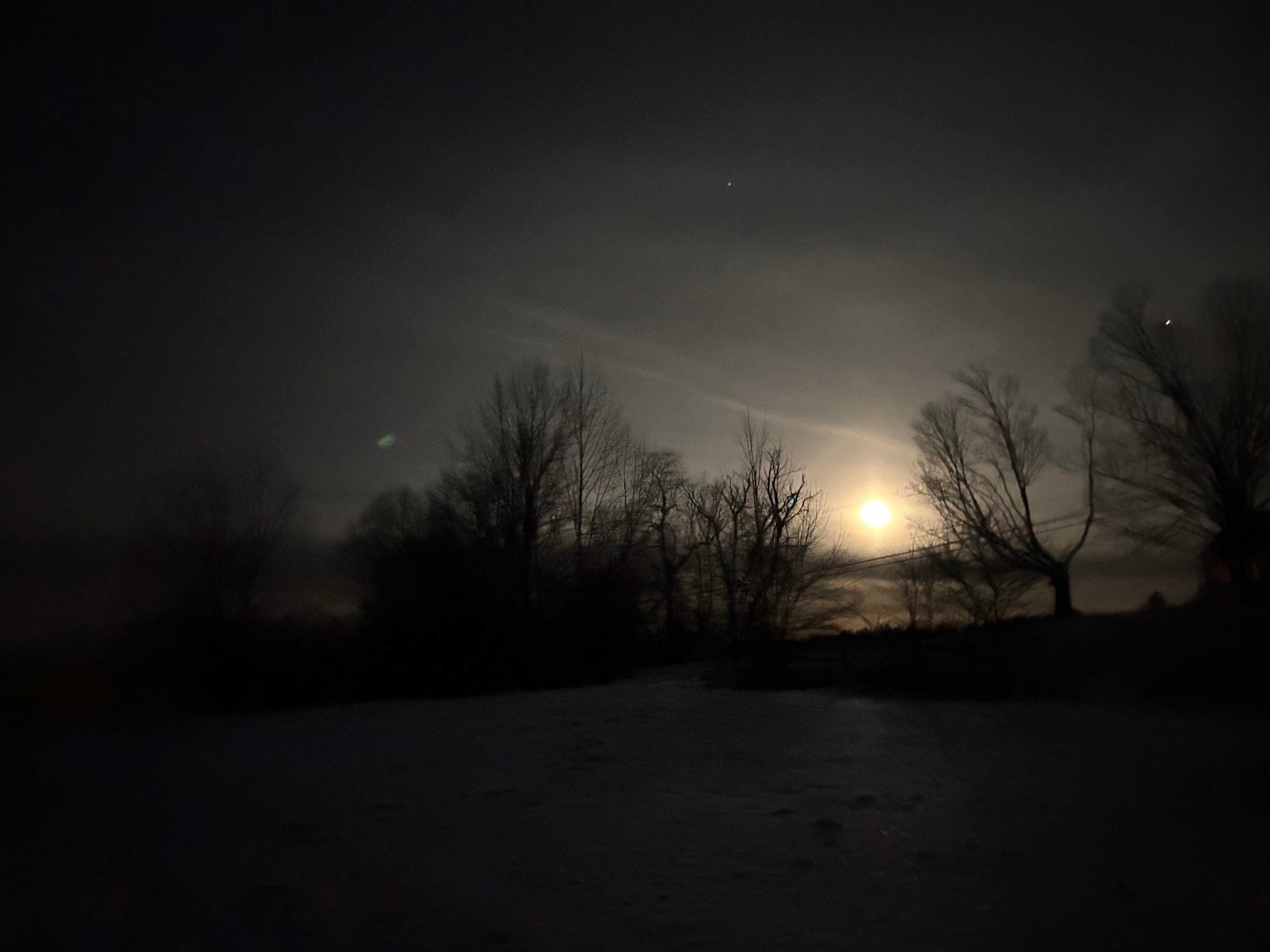On Sunday evening, long after dark, the stillness in the air and the absence of activity permeate our little neighborhood. We trudge across the deep snow in our front yard, not wanting to pack down our front walk, grinding the snow into the concrete where it will be harder to remove tomorrow. The snow is up to (and over) our knees. The beagle is grateful for the path we make in the dark. He would be over his head otherwise.